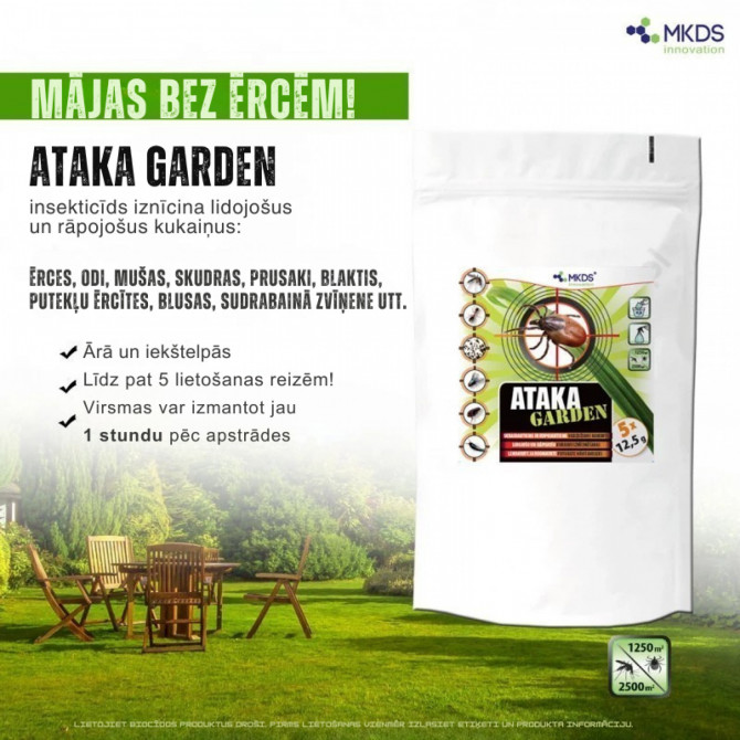 Ataka Garden ir efektīvs insekticīds–akaricīds, kas paredzēts lidojošu un rāpojošu kukaiņu, kā arī ērču apkarošanai telpās un ārpus telpām. Preparāts iedarbojas ātri – pirmie rezultāti redzami jau 1–3 minūšu laikā pēc saskares ar apstrādāto virsmu, bet maksimālā efektivitāte tiek sasniegta 24 stundu laikā.