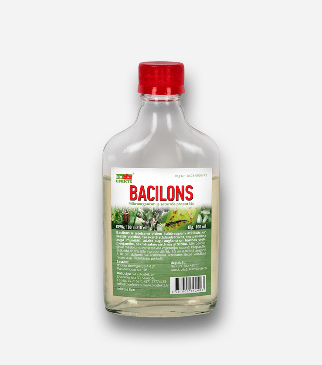 Regulē daudzu lapu grauzošu un sūcošu kukaiņu – laputu, kāpostu un rāceņu balteņu, kāpostu cekulkodes daudzumu vidē, traucējot to savairošanos. 1911. gadā baktērija Bacillus thuringiensis tika atklāta uz miltu kodes kāpura un uzsāka savu uzvaras gājienu cauri zinātnieku laboratorijām uz zemnieku laukiem. Pasaulē īpaši plaši tiek pielietota bioloģiskajās saimniecībās. Mūsu preparātā tā kooperē ar Pseudomonas sp. un uzlabo augu augšanu un attīstību. Bacilons sekmē sakņu sistēmas attīstību, jo saknes aizsargā Bacillus thuringiensis klātbūtne, kas optimizē kaitēkļu daudzumu.