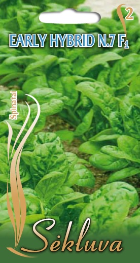 (Spinacia oleracea) Ražīga, vidēji agra šķirne, kas piemērota pavasara un vasaras nogales sējai. Audzēšanas attālums 15x6cm.