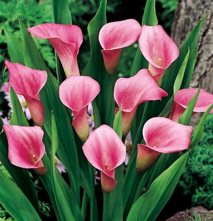 Zantedešija / dižkalla (Zantedeschia ) . Ārumu (Araceae) dzimtas augs, kam sakneni veido gums un ir lielas (līdz 45 cm) sirds-/bultveida lapas, kas dažām šķirnēm var būt ar „caurumiem” un skaistiem kallām tipiskiem „ziediem”. Īpatnēja ir dižkallas īpašība uz papu smailajiem galiņiem veidot ūdens lāses, par ko mēdz teikt, ka tās vēsta par laika maiņu Audzē augsnē ar augsnes skābumu pH 5,5-6. Augšanas periodā zantedešija jālaista bagātīgi (nepārlaistī!!!!) ar viegli skābu ūdeni, miera periodā pa retam, lai pilnībā neizkalst. Arī pēc noziedēšanas kādu laiku dižkallu turpina laistīt un mēslot.