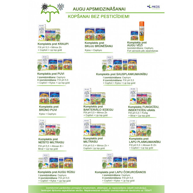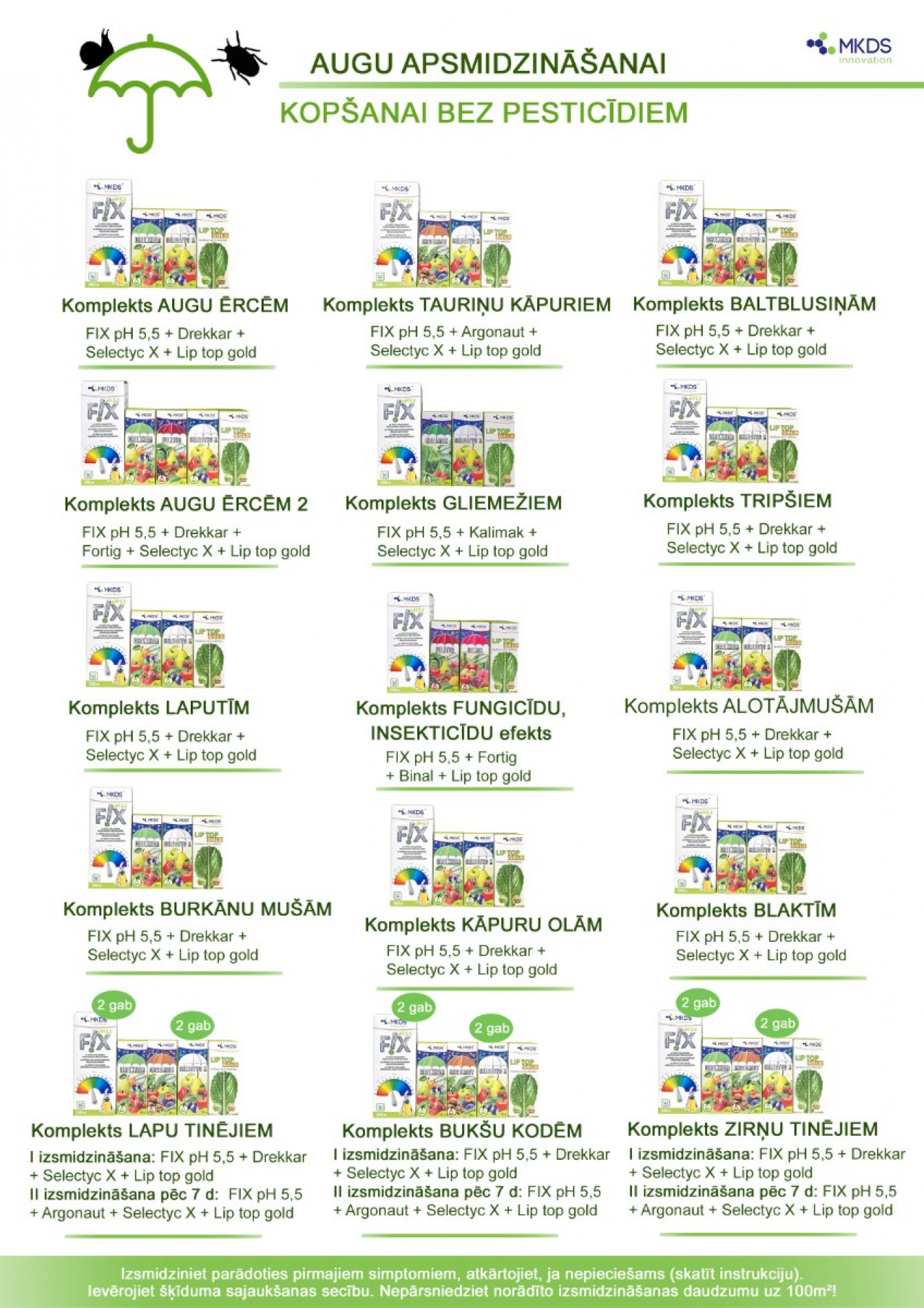 Ieteicams lietot kopā ar virsmas aktīvo vielu LIP TOP GOLD, kas uzlabo produkta uzsūkšanos un sadalījumu uz augu virsmas. Produkta efektivitāte nozīmīgi samazinās, ja šķīdums tiek pagatavots ar sārmainu ūdeni (pH > 7). Atbilstošu pH līmeni var nodrošināt ar FIX pH 5,5 stabilizatora palīdzību, kas nodrošina šķīduma optimālo skābuma līmeni un maksimālu aizsardzības efektu.