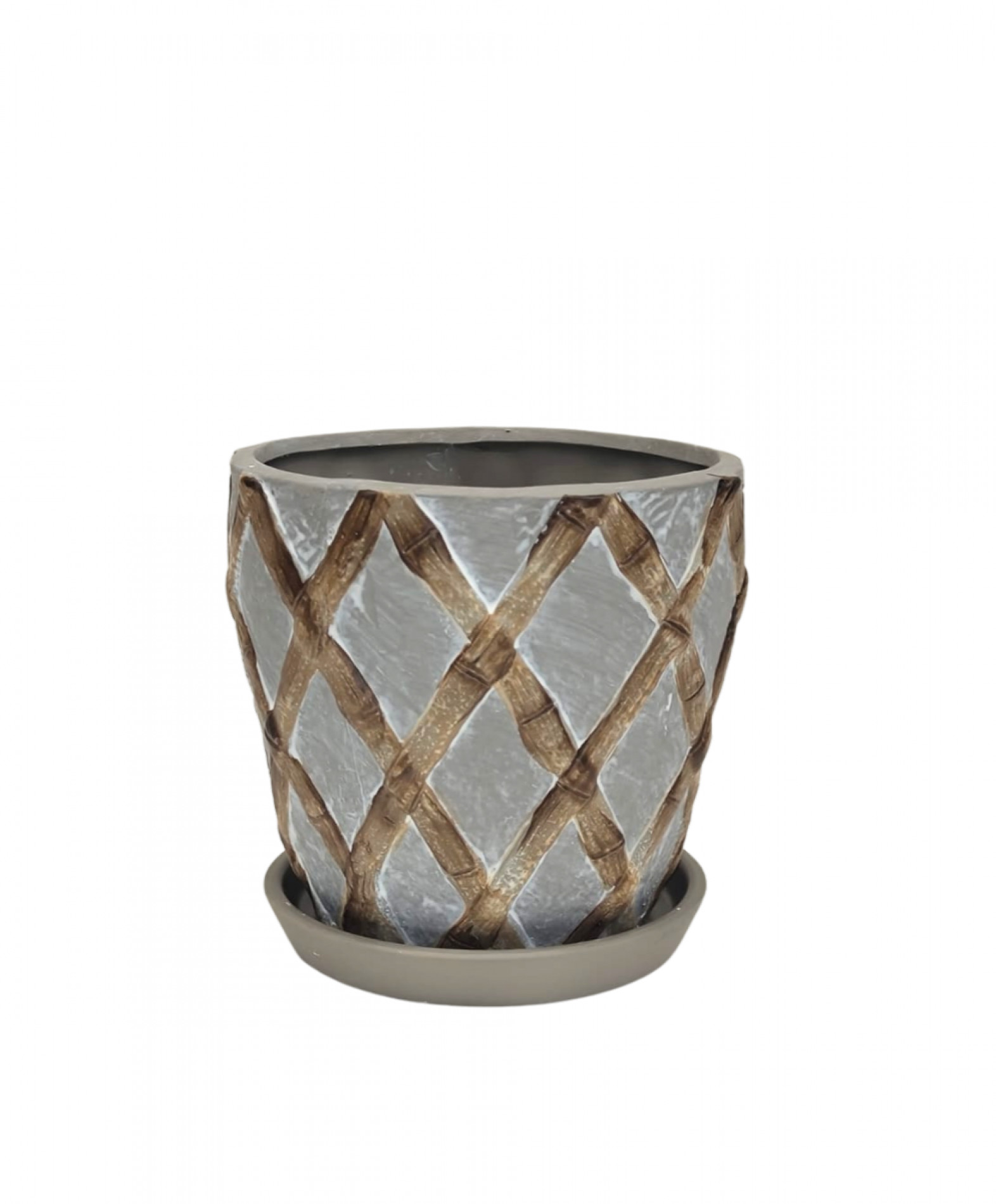 Augšējais diametrs - 9 cm, augstums - 9 cm, materiāls - keramika. Lietošana: iekštelpās un ārā. Podam apakšā ir caurums un komplektā nāk paliktnis.