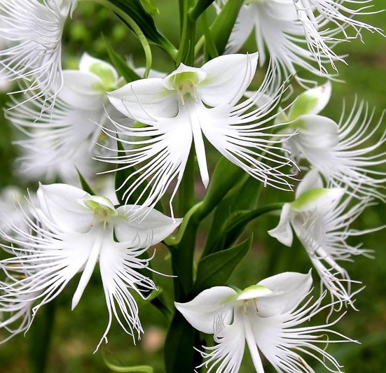 Dūju Orhideja (habaneria radiata), zināma arī kā balto gārņu zieds. Audzē dārzos,var arī uz balkona puķu podos. Priekšroku dod vienmērīgi mitrai, bet labi drenētai augsnei visu vasaru un sausam, vēsam ziemas miera periodam. Ziemā ieteicams nevis laistīt, bet apsmidzināt augu. Stublāji paceļas līdz 30 cm augstumā, un zied no jūlija līdz septembrim. Stāda aprīlī, maijā 5-8cm dziļumā.