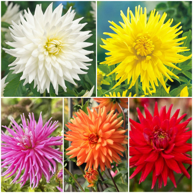 Dālijas kaktusziedu ROZĀ 8gabDālijas kaktusziedu BALTAS 8gabDālijas kaktusziedu ORANŽAS 8gabDālijas kaktusziedu DZELTENAS 8gabDālijas kaktusziedu SARKANAS 8gab